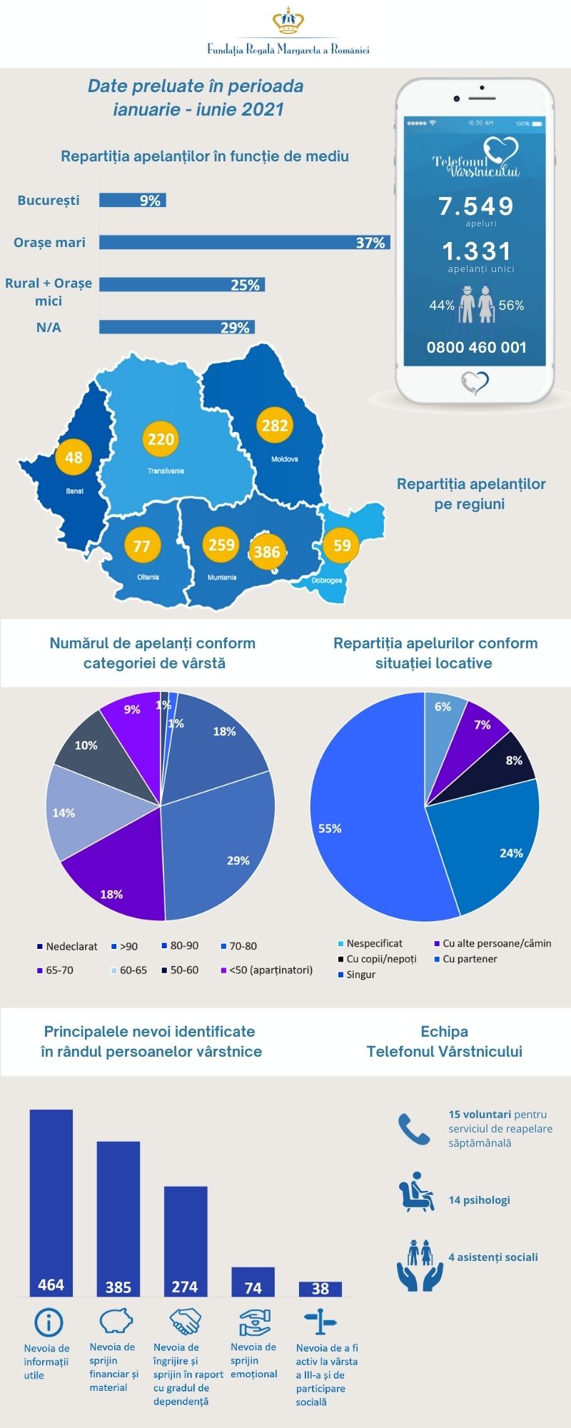 • Cei mai mulți dintre apelanții liniei telefonice locuiesc singuri și au peste 70 de ani.